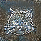 A vibrant portrait of a cat with striking orange fur and expressive green eyes. The background features a deep blue, enhancing the cat's charming features and capturing its curious personality.