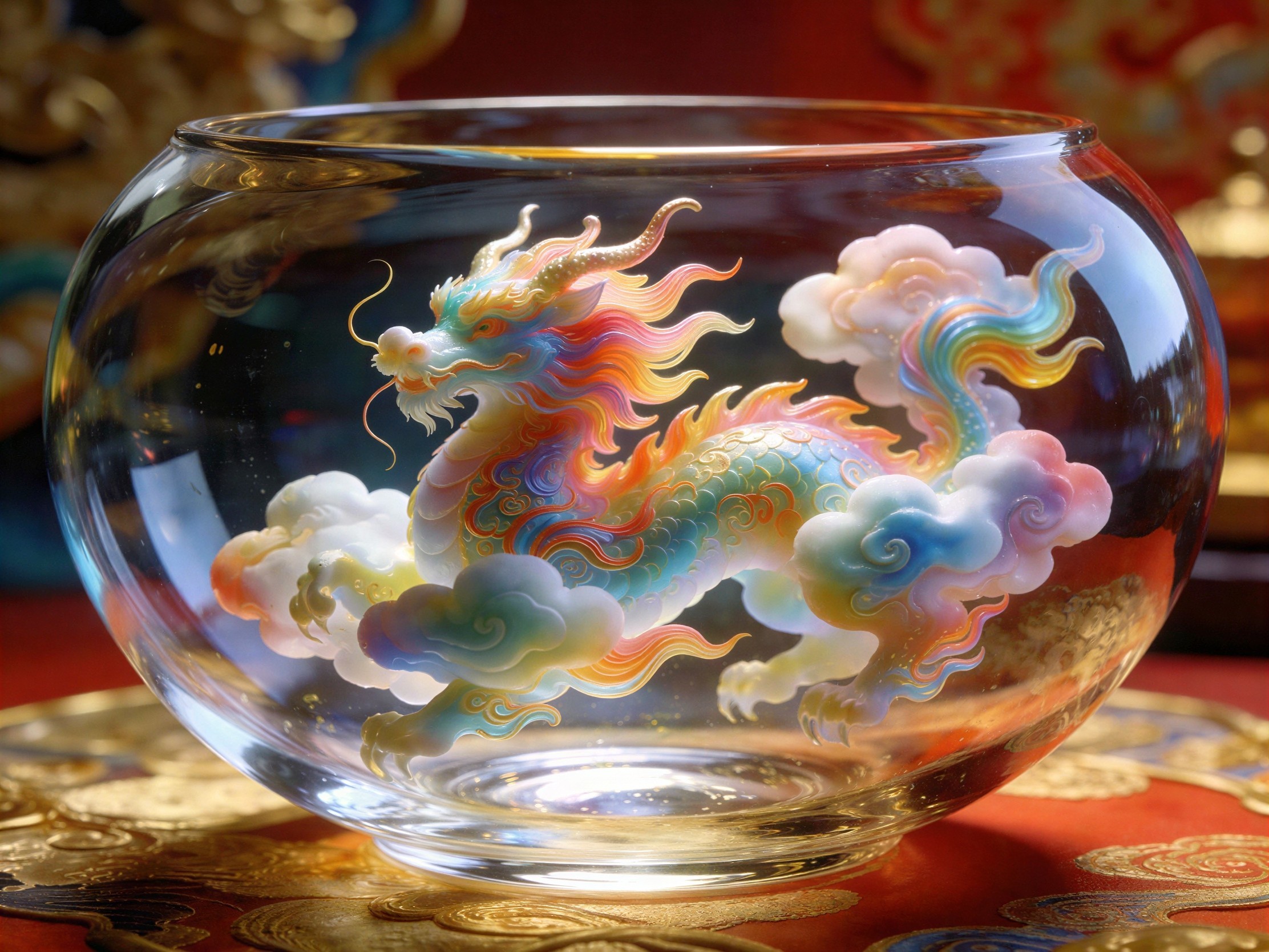 a cloud dragon in a glass bowl