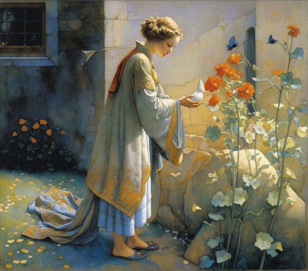 . Art by Andrew Wyeth, Erin Hanson, Klimt, CE brock, H. R. Millar, Dee Nickerson, Arthur Rackham. 3d, extremely detailed, beautiful, watercolor and ink, mixed media, Best quality, Very high definition, super clear resolution, cinematic, intricate, fantastic view, beautiful, dynamic lighting, high definition, hdr *Random prompt award winning Max Ernst ultra detailed, 4K 3D, Texture