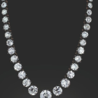 A stunning diamond necklace displayed elegantly on a black velvet bust. The piece sparkles with a variety of cut diamonds, showcasing intricate floral designs and a central teardrop gem.
