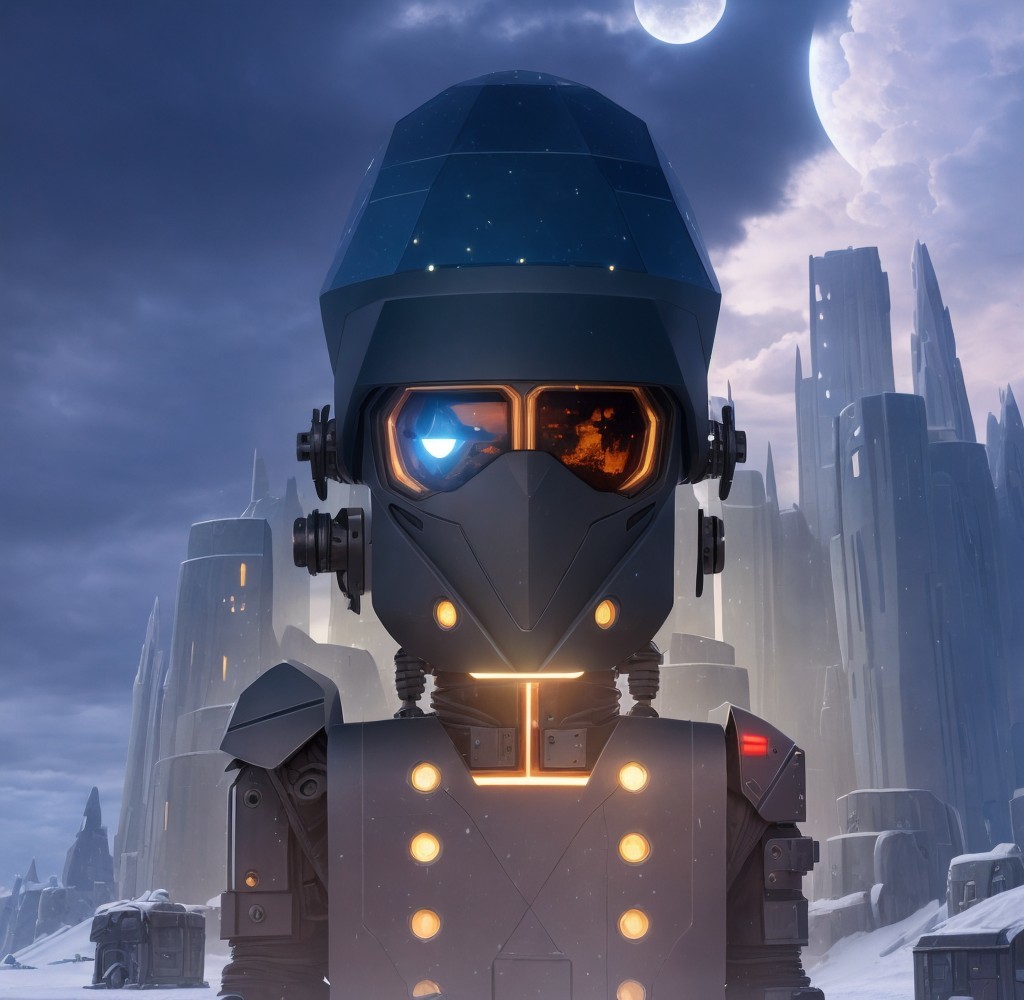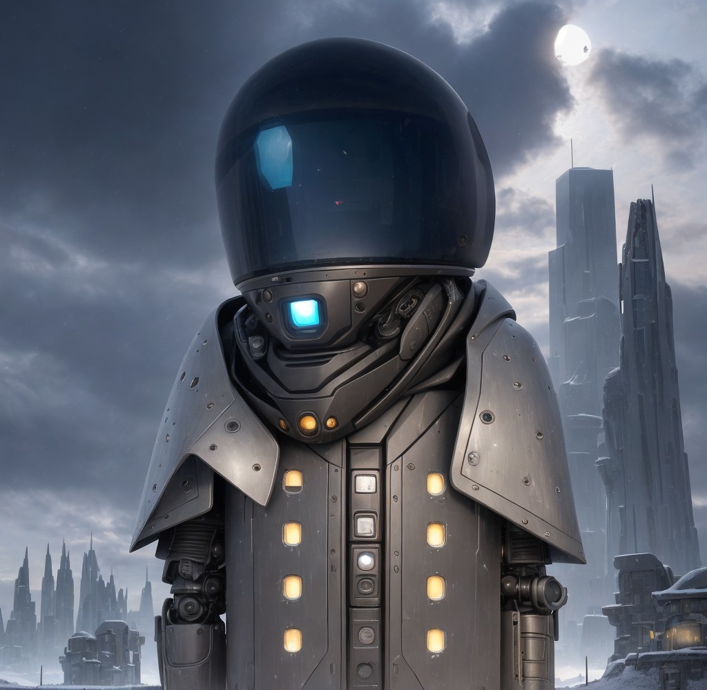 A peaceful, curious robot explores a distant planet at the end of Winter.
