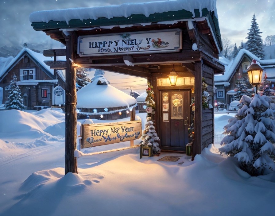 A village in the North Pole ready for the New Year, in the style of Monge.