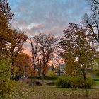 Serene Autumn Landscape with Vibrant Foliage and Sunset