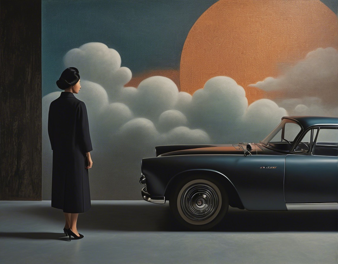 The scene depicts two men seated at a table inside a dimly lit room, overlooking a stormy landscape in Beijing. Red lanterns hang above, casting a warm glow amidst the dark, rainy backdrop.