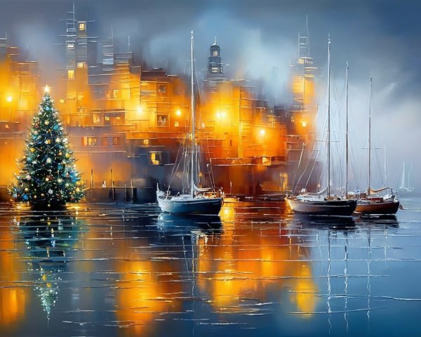 A colorful impressionist painting of a rainy evening with glowing streetlights, a couple under an umbrella, and vintage cars.