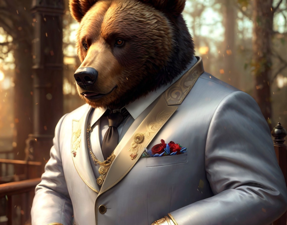 Sophisticated Bear in Elegant Suit with Grand Interior