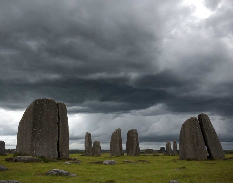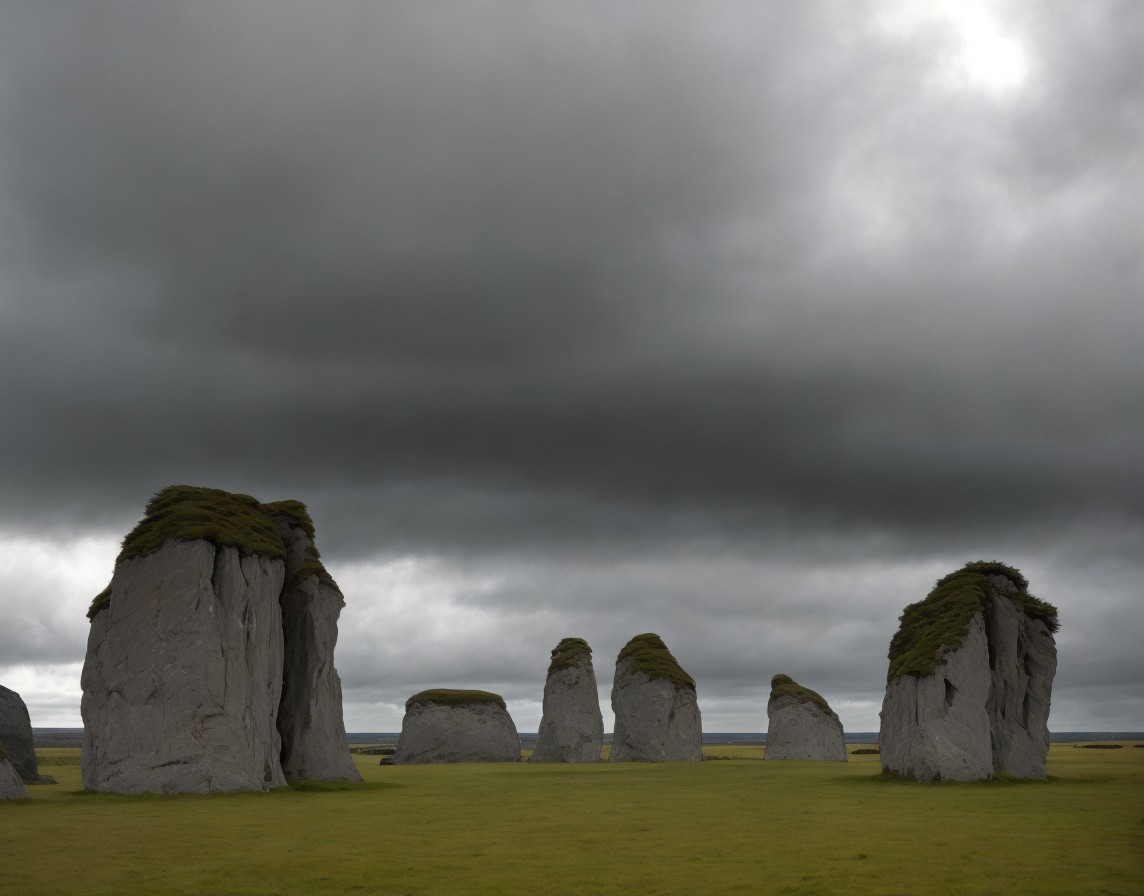 A man in a suit stands in a surreal room with celestial motifs, stars, and abstract shapes on the walls and floor.