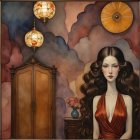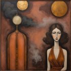 Create a minimalistic expressionistic painting which illustrates this concept: "The truth is not far from us; it is within us." "Solitude can do funny things to the mind . foggy nostalgia, portrait in Burnt umber and salmon gold, smoke and mirrors, patina of, battery acid, art brut, moody, somber, desaturated colors, in the style of Paul Klee, Arthur Rackham Dark and moody oil painting of a woman with piercing black eyes, inspired by the works of John Singer Sargent and Edgar Degas, long shot, realistic texture, dramatic lighting, intricate details on clothing and Magical woman fading tones of melancholy and summer nostalgia, soulful portrait, in burnt umber, plutonium, patina of mercury glass, tea stains, art brut, moody, somber, desaturated colors, in the style of Paul Klee, Banksy, Arthur Rackham, based on Prompt by KRW