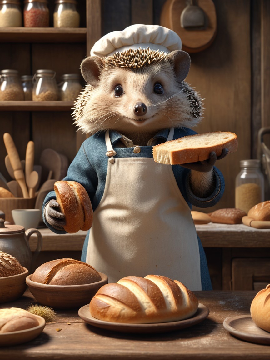 Hedgehog Baker Spreads Joy with Bread (Repetition: 126w)