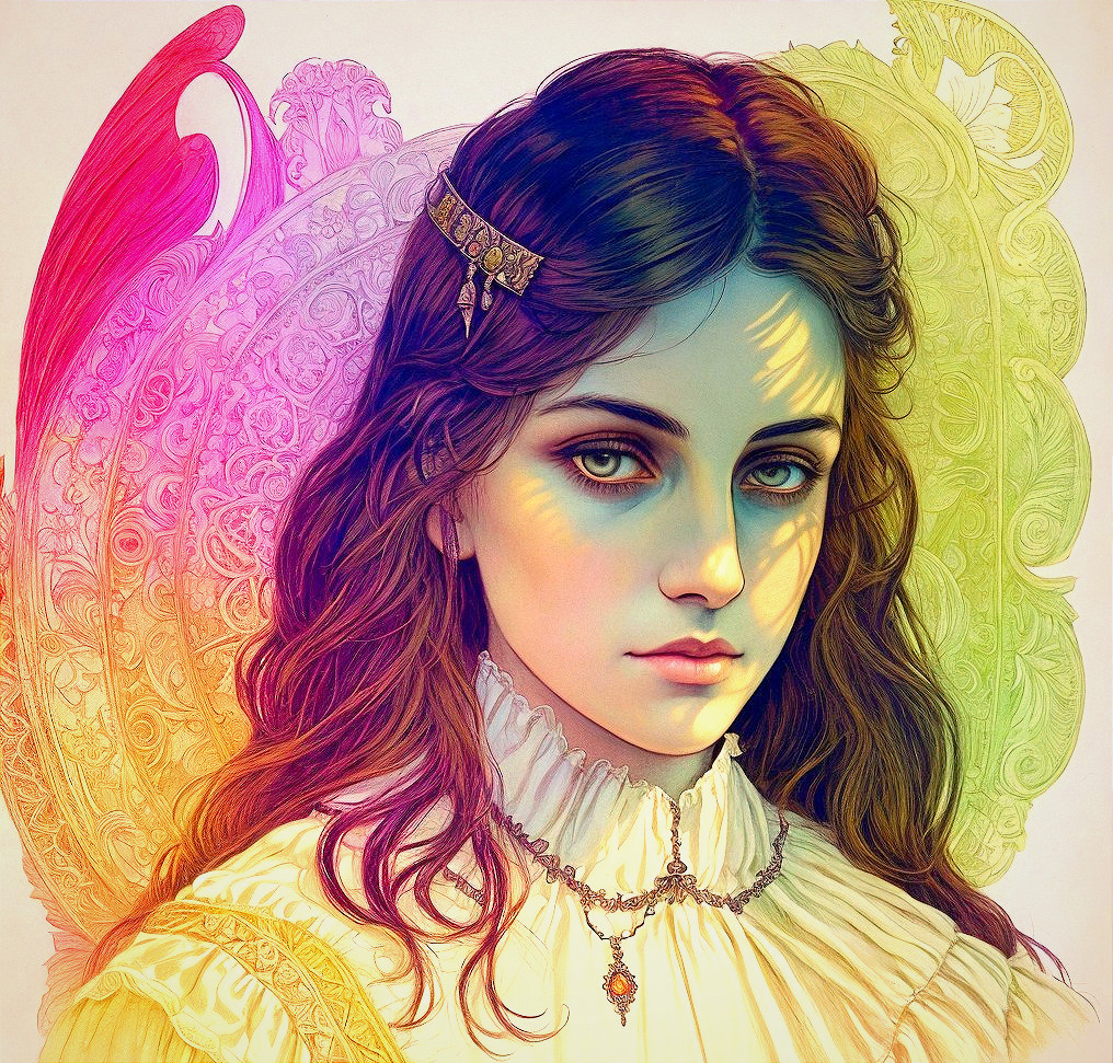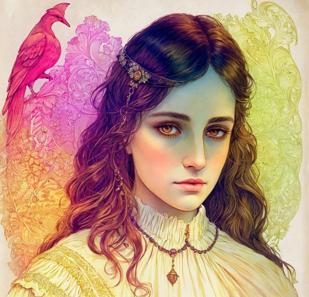 Storybook illustration portraiture by kate greenaway, american gothic 1.9, triadic color scheme beige green amber, upper body portrait of gorgeous brown haired priestess with devilish eyes, hues, gothical, dark fantasy, coffinwood, colored ink drawing, fantastical artwork in withered pale colors, high detail, pastel colors 0.8, intricately detailed, anglo gothic 1.7, dappled lighting, grunge, (steampunk (triadic color scheme green, ochre, burgundy) 6:11), inkpunk, background with gradient colors in Art Deco by Sonia delaunay, perfect handsface, 3 layers of dof, gouache details, moving pose, (colorful background with tints of Jay coby in Bright illumination, intricate surrounding), tints of 1990s fantasy art) 7:11), detailed plasticity, dethereal, luminous plasticity, 3d effects, line-art strokes, dye, spiritual essence , candyfloss flares, anisotropic filtering, shadow mapping 1.3, dynamic lighting 1.2, brightened daguerreotype photography style on old paper, colorful yam, auracore, dreamscape, mystical symbolism, magical realism, erotic essence, alcoholic inkpunk 1.8, anisotropic filtering 1.7, colorful iridescence 0.7, hues, plasticity 1.6, complexion 1.4, brightness 1.9, ambient occlusion 1.5, shadow mapping 1.3, dynamic lighting 1.7,colorful iridescence, raytraced shadows 1.8, radiance, illustrative divisionism, psychedelic psychpomp scene, victorian garments, quilling, quaint, eerie, occult, 3 layers of dof, retropunk, sweaty, crisp quality, octane render illustration 1.5, tints of comic book art 1.7, grunge, uhd hdr, luminosity 1.3, dramatic lighting from top to centre, dreamscape, traumacore 1.9, concept art,