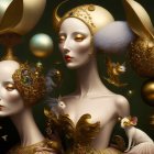 Ethereal Figures with Golden Elements in Dreamlike Scene