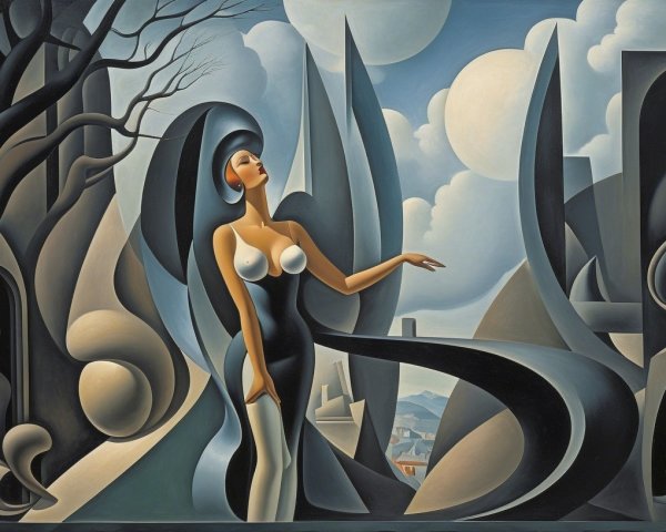 A serene landscape features a large tree mirrored in a calm lake, set against a twilight sky with two luminous moons and soft clouds, evoking a dreamlike, peaceful atmosphere.