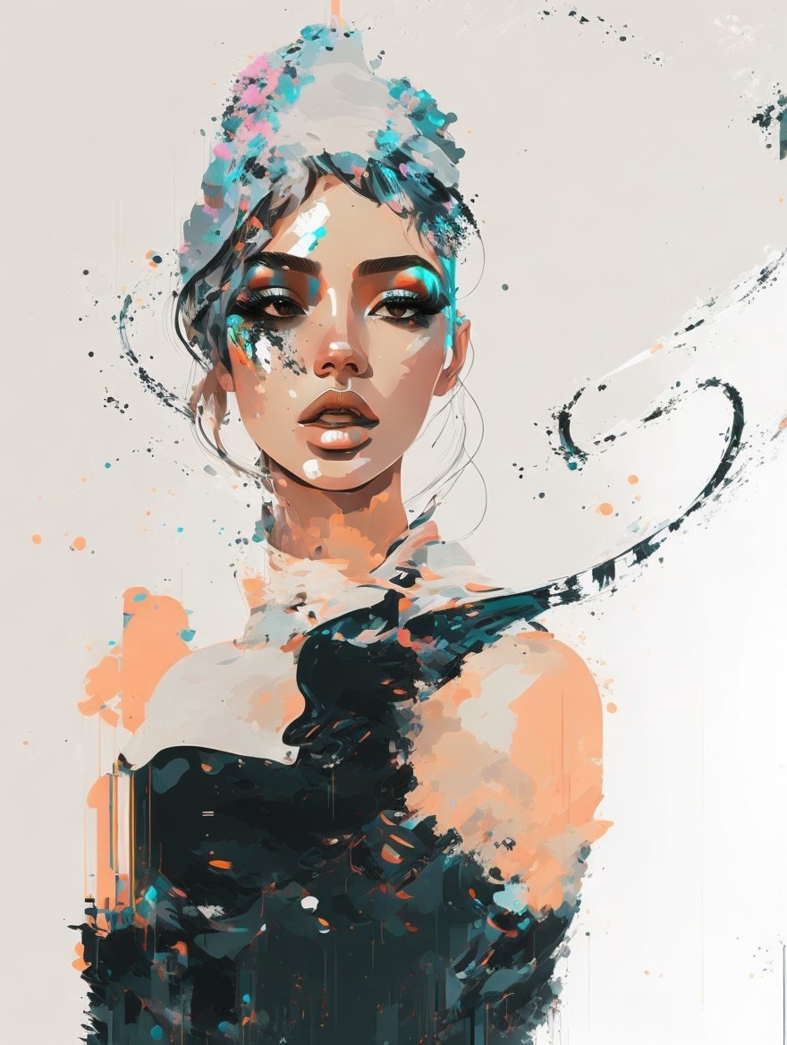Prompt: Base +Vector style the abstract painting of an image of a girl, artistic flat illustration, cyber punk minimal figure art, soft colors mono chromatic, art in the style of Bryen Frost