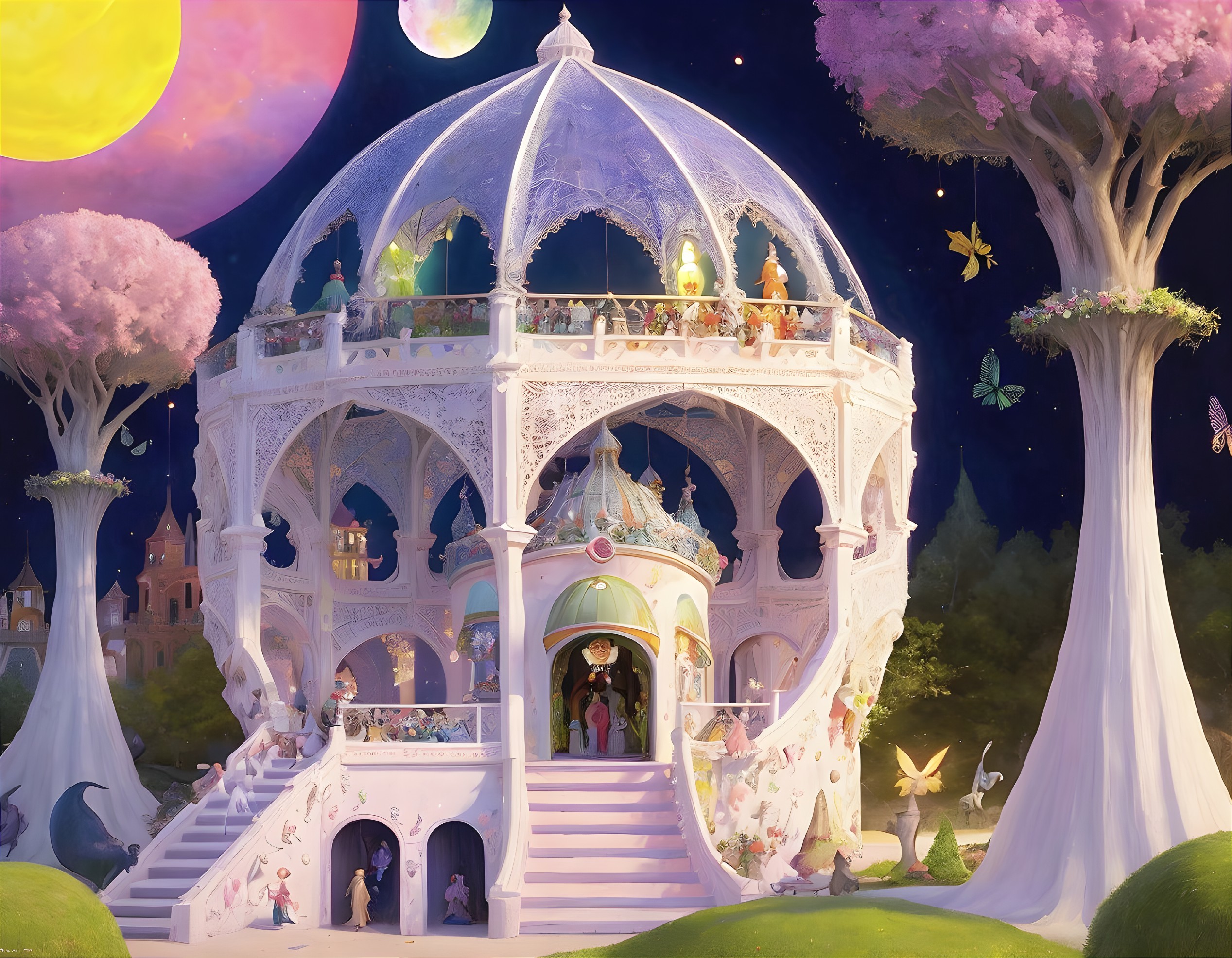 This digital artwork is a stunning masterpiece inspired by Hieronymous Bosch, featuring a whimsical landscape with intricate details, vibrant colors, and hidden symbolism. The composition is intricate and detailed, with a surreal and fantastical atmosphere that is both elegant and beautiful.