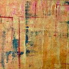 The image features an abstract composition with vibrant blues, purples, and hints of gold. Textured layers create a fluid interplay of colors, evoking a sense of movement and depth.