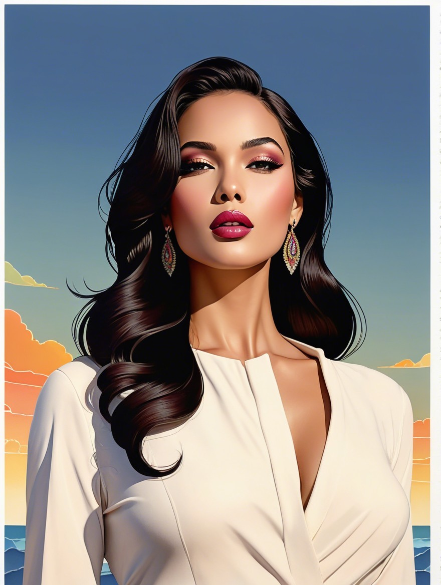 Sultry femme fatale with a engaged allure. Colorful stylized lineage, line-art, zentangle, micro-pen ink details, intricate swirling composition, tranquil visage with serene expression. Plasticity 1.4. The artwork shows a visionary and dynamic color palette. Employ op art details with tall and lean features with fractal line patterns by Tim Burton, Anton Pieck, Ho Baron, dof, debeh, bokeh, quilling. simplistic lineage and line-art fusion, merged styles of ho baron and man ray, geometrical reminiscence by Ed Binkley and Frank Frazetta, light composition with warm hues. Executed in pencil sketch style with a naive art touch, featuring a myriad of delicate tones merging seamlessly symmetrical background. Infuse pastel tones for detailed elements, creating a scattered lineage effect, stylized lineage drawing. inkpunk influences, color hues by Overton Loyd and Brad Kunkle, blending ukiyo-e and fauvism styles, featuring a pastel color palette, 3D effects, sharp focus, overspray of thinned watercolor, detailed linework, intricate stylization. Include liquid elements, floating motifs, dynamic lighting, and joyful, serene vibes. Intricately textured elements, tints of Arlie Opal, dramatic lighting reminiscent of Turner, warm color palette, fine line linocut details, soft curves and top to bottom angles, dynamic lighting 1.4. Gothic-inspired visual approach, storytelling. angular, pale skin, funky, eerie, faint reflections, hues by Ho Baron. Moody atmosphere, Sharp, angular linework, Bold and dynamic shadows. Color glitch effect, pen and ink detailing by Alex Grey, dynamic geometrical patterns, dark art aesthetic, progressive gradient inking, debeh, bokeh,, dof, layered, great depth and scale, Intricate silk canvas, abstract postexpressionism, dreamy dystopian portraiture, stylized illustration, colourful surreal lineage forms, smoothly related contouring outlines, asymmetric composition, mixed 2D and 3D construction, Champlevé technique by Paul Cadden, detailed linework, t