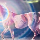 Two elegant horses walk through a misty landscape, showcasing their muscular forms and flowing manes. Sunlight filters through the trees, adding a magical ambiance to the serene scene.