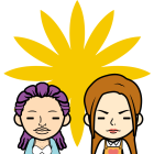 The image features two stylized women kissing, their faces close together. One has brown hair in a braid, wearing a yellow and black top, while the other has blonde hair and wears a purple top.