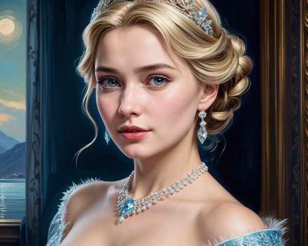 A silhouetted woman in a sleek black dress gazes over a futuristic cityscape at night, illuminated by vibrant lights and a starry sky, creating a blend of elegance and modernity.