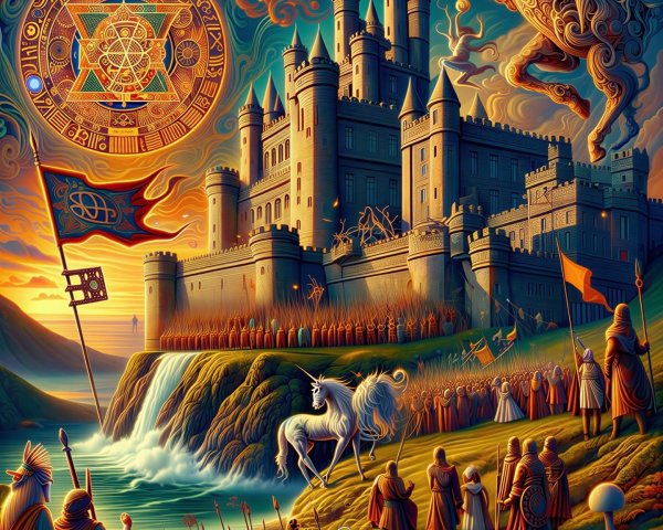 Prompt: Madonna Louise Ciccone standing fierce conjured under a spooky halloween moon blessed be pendragon magical, spell forged source code pentagram, intricate energy bursts, reflections of fire, hyper-detailed work, complex, colorful, polished in the style of Daniel Merriam, Brian Froud, Josephine Wall, Catherine Abel style Raphael