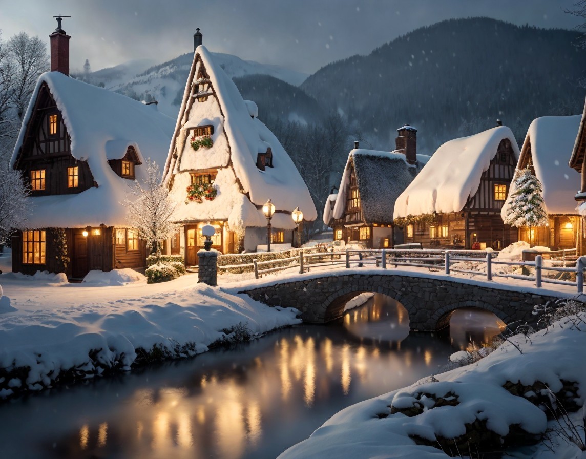 Edmond's Field, Windspring Inn and houses are covered in Snow