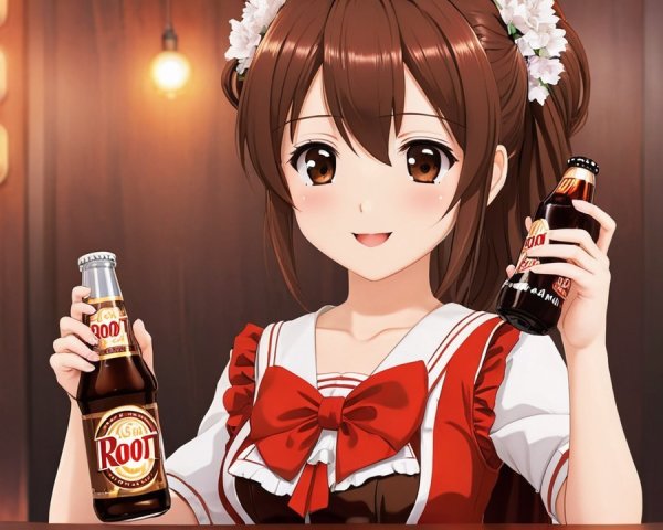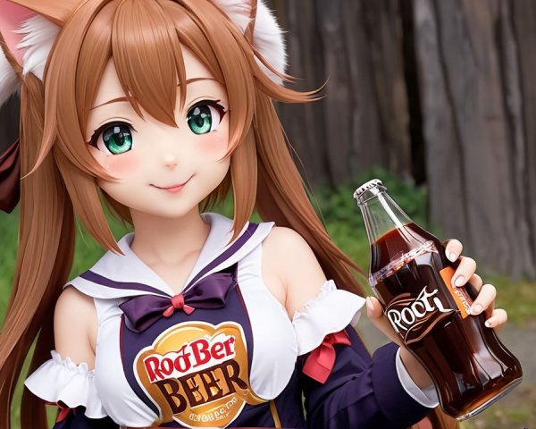 A charming anime character embodies the spirit of a drum goddess, featuring vibrant colors, playful expressions, and intricate designs. She captivates audiences with her rhythmic talents and enchanting presence.