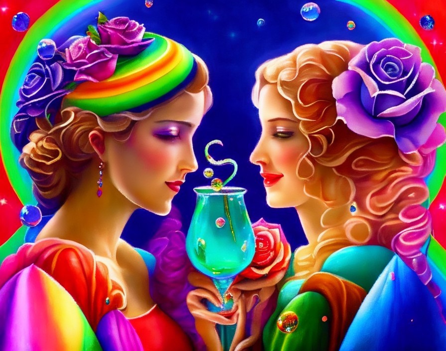 Prompt: "The Three of Cups is a card of celebration, friendship, sisterhood, and creative collaborations. Your friends and family are here to support you and lift you up to even higher levels of success. Celebrate with them and enjoy their camaraderie."