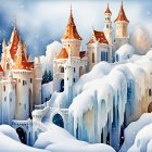 A striking cat with orange and white fur sits gracefully against a dreamy background of vibrant leaves and a glowing moon, blending natural elements with whimsical artistry.