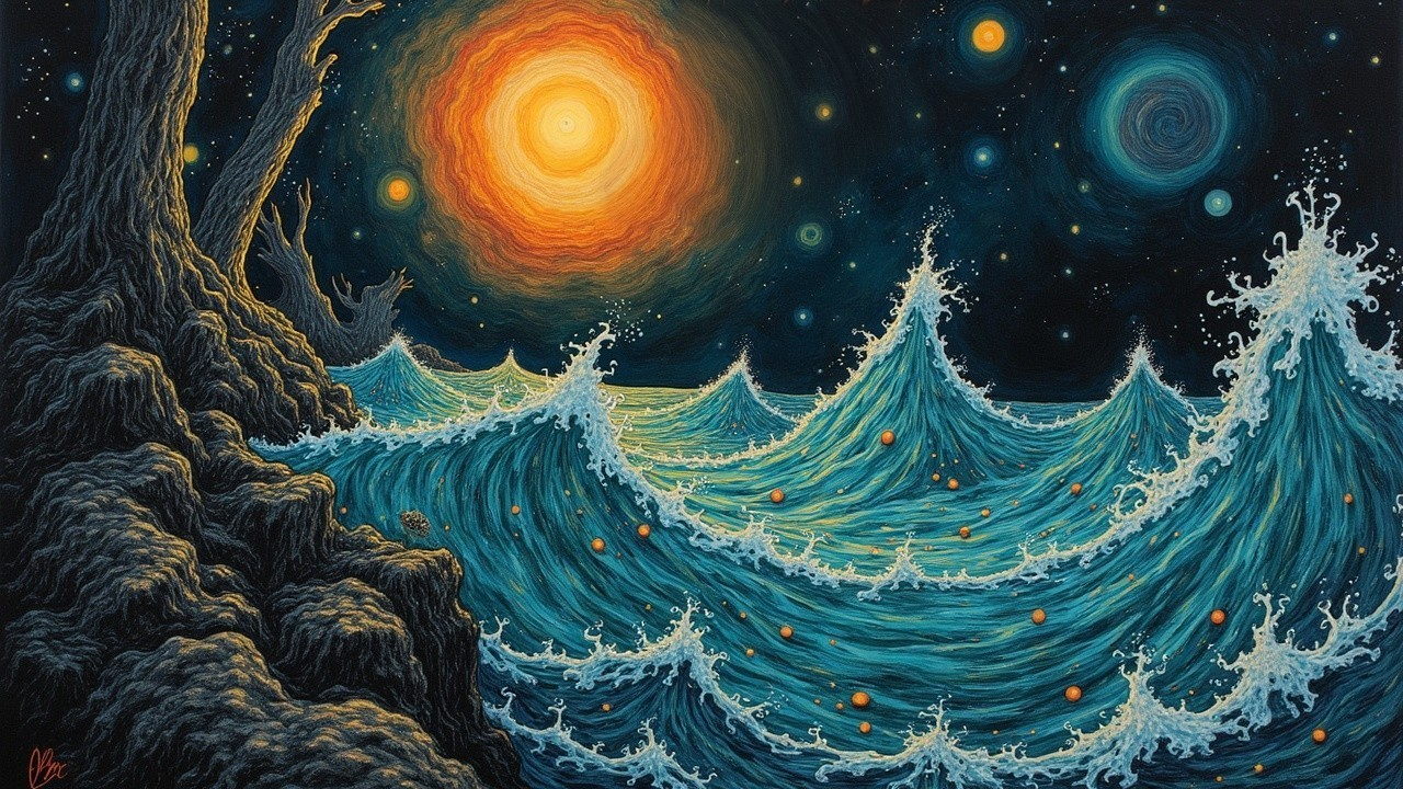 Ink and oil on canvas. In the style of Van Gogh, Leonora Carrington, Boris Vallejo, German Expressionism, Felicien Rops, (((Georgia O'Keefe))) and Aubrey Beardsley.