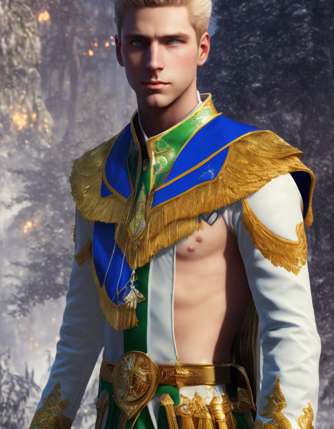 Prompt: "((Full body)), Man 25 years old, blue and green eyes mix, blonde hair, pale skin, symbolism style, detailed painting by Akihiko Yoshida, Mikhail Vrubel"