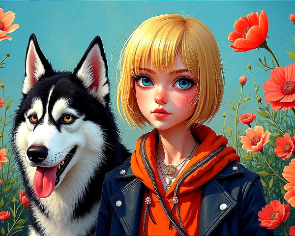 An action-packed scene featuring a woman leaping towards a helicopter with mountains in the background under a clear blue sky.