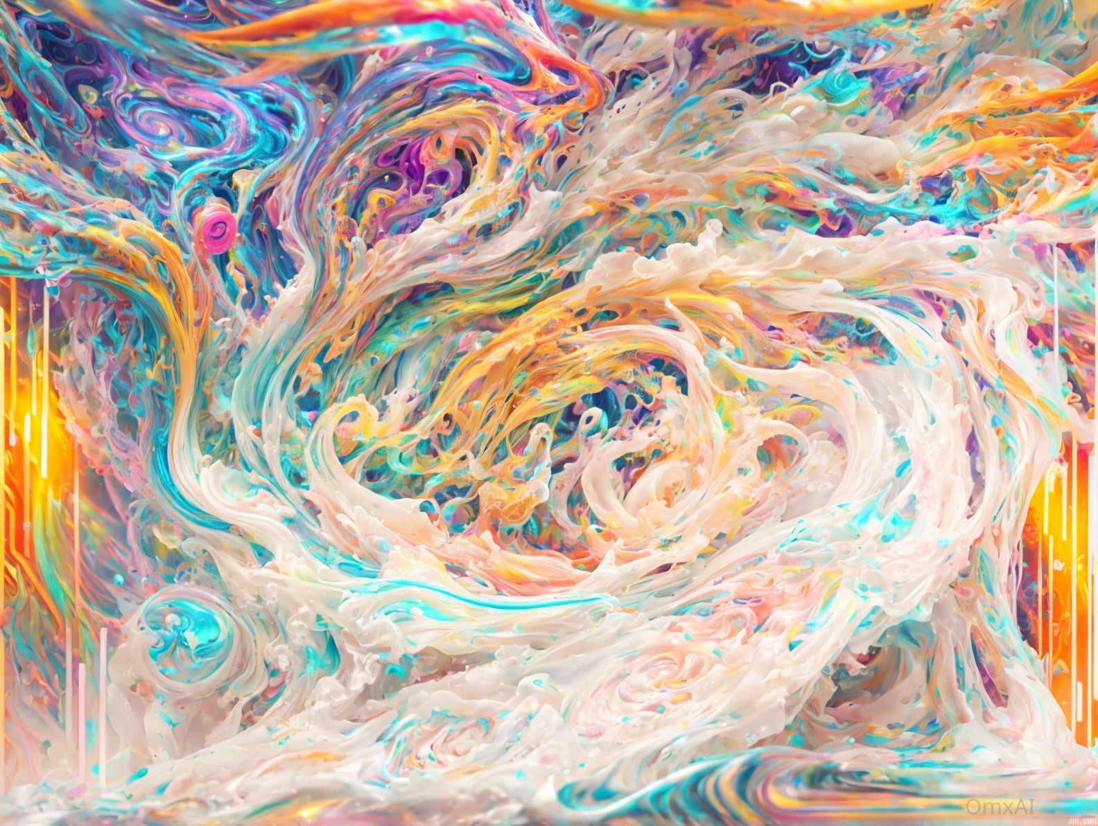 A vibrant digital artwork with swirls of iridescent colors and fluid patterns creating a mesmerizing abstract visual experience.