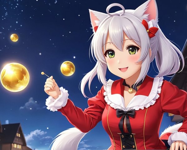 A charming anime girl showcases a unique graphite-themed swimsuit, blending elegance with a modern twist. Her playful demeanor and stylish design make her stand out in a vibrant summer setting.