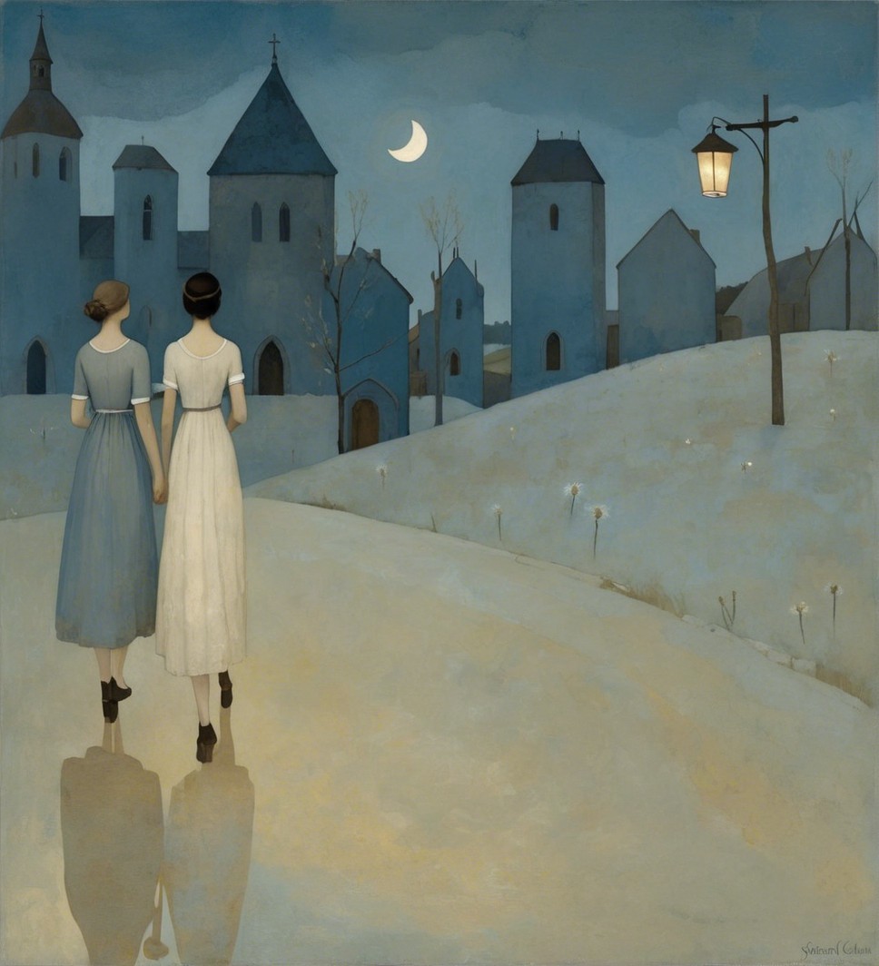 White and blue and sepia artwork. “The old gods are everywhere,” she says. “They swim in the river, and grow in the field, and sing in the woods. They are in the sunlight on the wheat, and under the saplings in spring, and in the vines that grow up the side of that stone church. They gather at the edges of the day, at dawn, and at dusk. surrealistic, beautiful high definition acrylic art, watercolour patchwork, mosaic accents, impasto palette knife strokes, ethereal 3D elements, whimsical details, intricate design, subtle cubist influence, square pattern background, zentangle patchwork style.