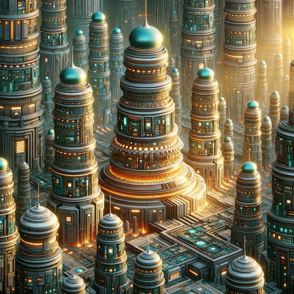Cityscape SK 249: Golden Skyline: A Futuristic Vision