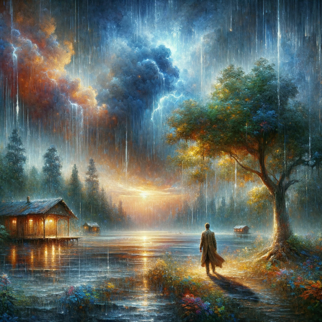 Prompt: Enhance best quality, less detailed, more lightness!!! When the rains fell, they fell in savage torrents, remember the floods, the huts that were washed away.