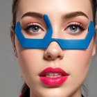 A colorful LEGO figure featuring a girl with vibrant, wavy blonde hair, wearing stylish blue glasses and a multi-colored vest, exuding a cheerful and playful vibe.