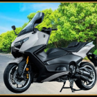 Sleek 2025 Yamaha 560 TMax Tech Black and Silver Motorcycle on Street