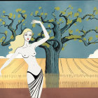 Stylized Nude Woman with Abstract Tree and Blue Sky
