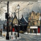 A serene coastal scene featuring rugged rocks and towering trees. Waves crash against the shore, while lush green and orange foliage adds vibrant color to the dramatic landscape.