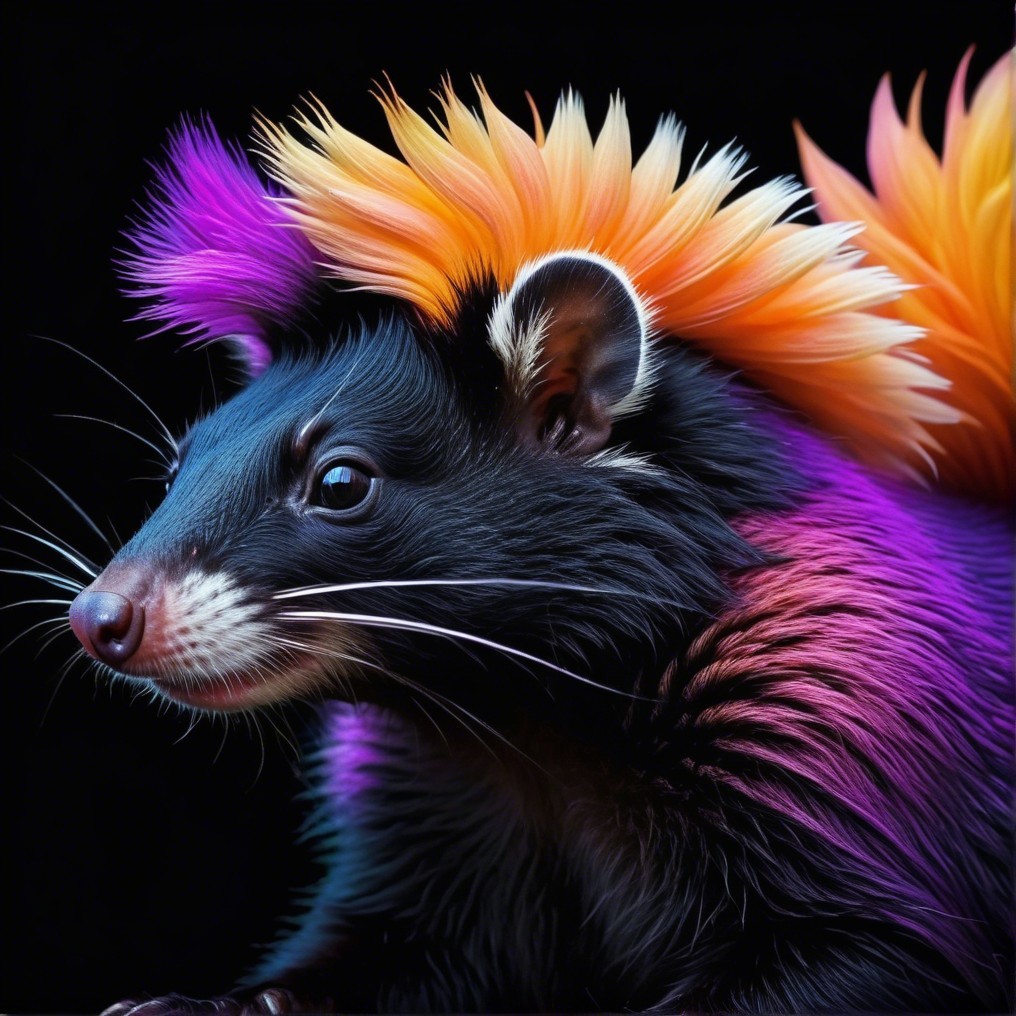 A vibrant, stylized animal with colorful fur and an extravagant, feather-like crest on its head. The image is filled with swirling patterns and a luminous, dreamlike quality.