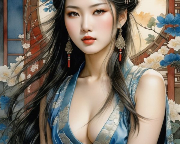 A graceful dancer adorned in vibrant green and gold attire strikes an elegant pose. Her ornate headdress and jewelry complement the lush, tropical backdrop, evoking a rich cultural heritage.