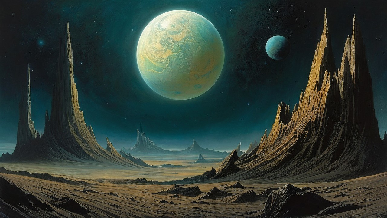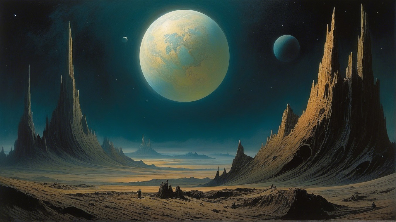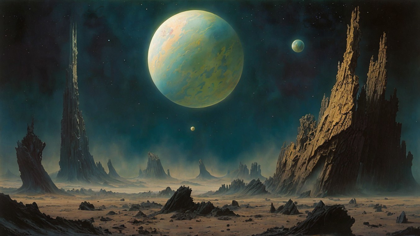 Prompt: "Wreckage of a desolate planet in space. (((Devoid of all life))).