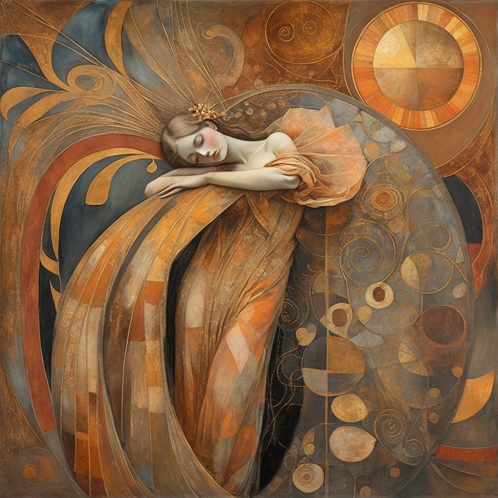 + Prompt:Emerging chrysalis. foggy nostalgia, portrait in Burnt umber and salmon gold, smoke and mirrors, patina of, battery acid, art brut, moody, somber, desaturated colors, in the style of Paul Klee, Arthur Rackham Dark and moody oil painting of a woman with piercing black eyes, inspired by the works of John Singer Sargent and Edgar Degas, long shot, realistic texture, dramatic lighting, intricate details on clothing and Magical woman fading tones of melancholy and summer nostalgia, soulful portrait, in burnt umber, plutonium, patina of mercury glass, tea stains, art brut, moody, somber, desaturated colors, in the style of Paul Klee, Banksy, Arthur Rackham, based on Prompt by KRW