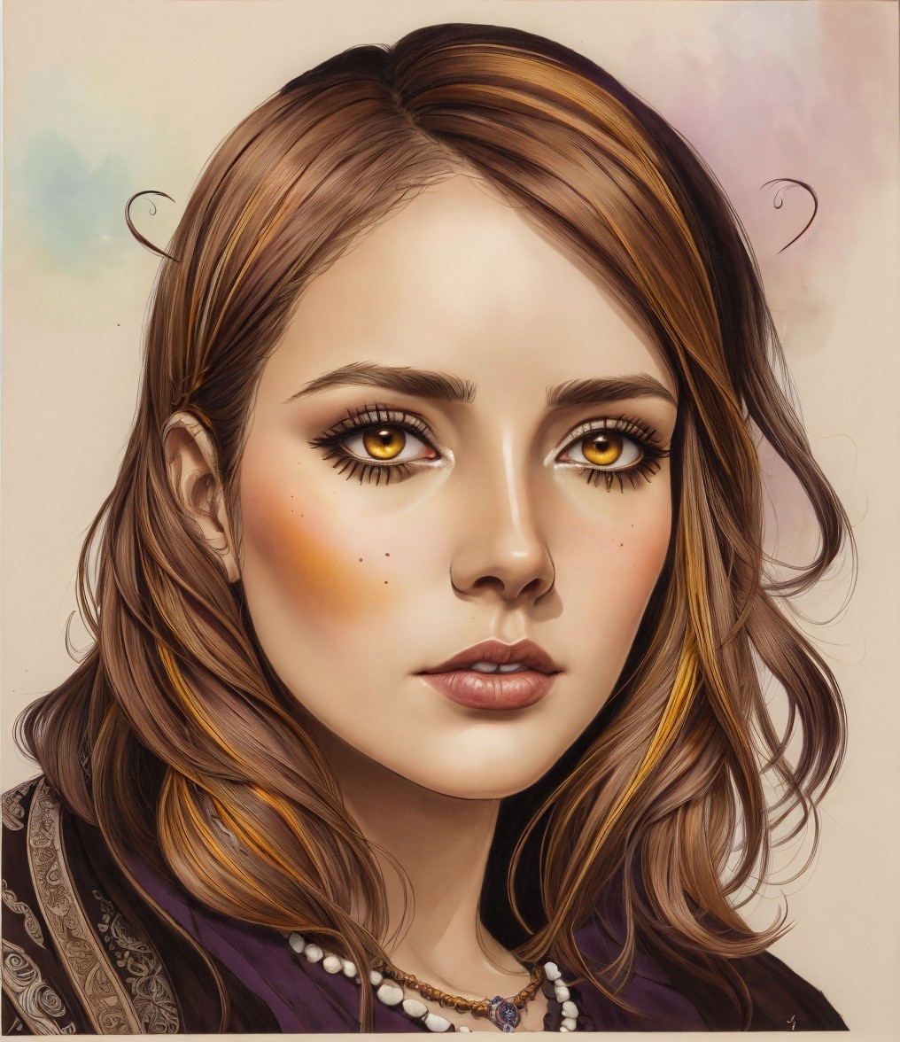 Cokored ink drawing, inkpunk, melted colors, Portraiture with aura, cottagegore 1.2, tetradic color scheme beige bmauve ochre amber, hues, Handsome brown haired priestess, soft rounded edges, quilling, delicate coloring 1.9, withered pale colors, high detail, intricately detailed, american gothic 1.7, dimmed dynamic lighting, anglo gothic 1.6, stylized illustration, (instaport style (triadic color scheme beige, ochre, burgundy) 7:11), inkpunk, background in Art Deco by Edward Hopper, perfect handsface, ornamental details, Watercolor features, glossy reflections, (dark beige background with tints of Overton Loyd n vivid illumination, intricate surrounding), tints of science fiction art, 7:11), luminous plasticity, auracore, grain, 3d effects, finest strokes, spiritual essence , tiny flares, anisotropic filtering, shadow mapping 1.3, dynamic lighting, daguerreotype photography style on old paper, dreamscape, mystical symbolism, magical realism, synthetic essence, alcoholic inkpunk 1.8, anisotropic filtering 1.7, colorful iridescence 0.7, hues, plasticity 1.6, complexion 1.4, brightness 1.9, ambient occlusion 1.5, shadow mapping 1.3, ,colorful iridescence, raytraced shadows 1.8, radiance, illustrative maximalism, psychedelic psychpomp scene, victorian garments, quilling, quaint, eerie, occult, retropunk, sweaty, crisp, octane render illustration 1.5, comic book art 1.7, grunge, coherent, fauvistic, headshot, stacked-up perspective, charcoal textures 1.7,