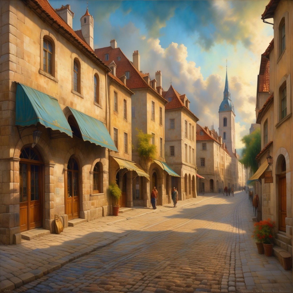 An Italian Street scene featuring quaint buildings and a few pedestrians.