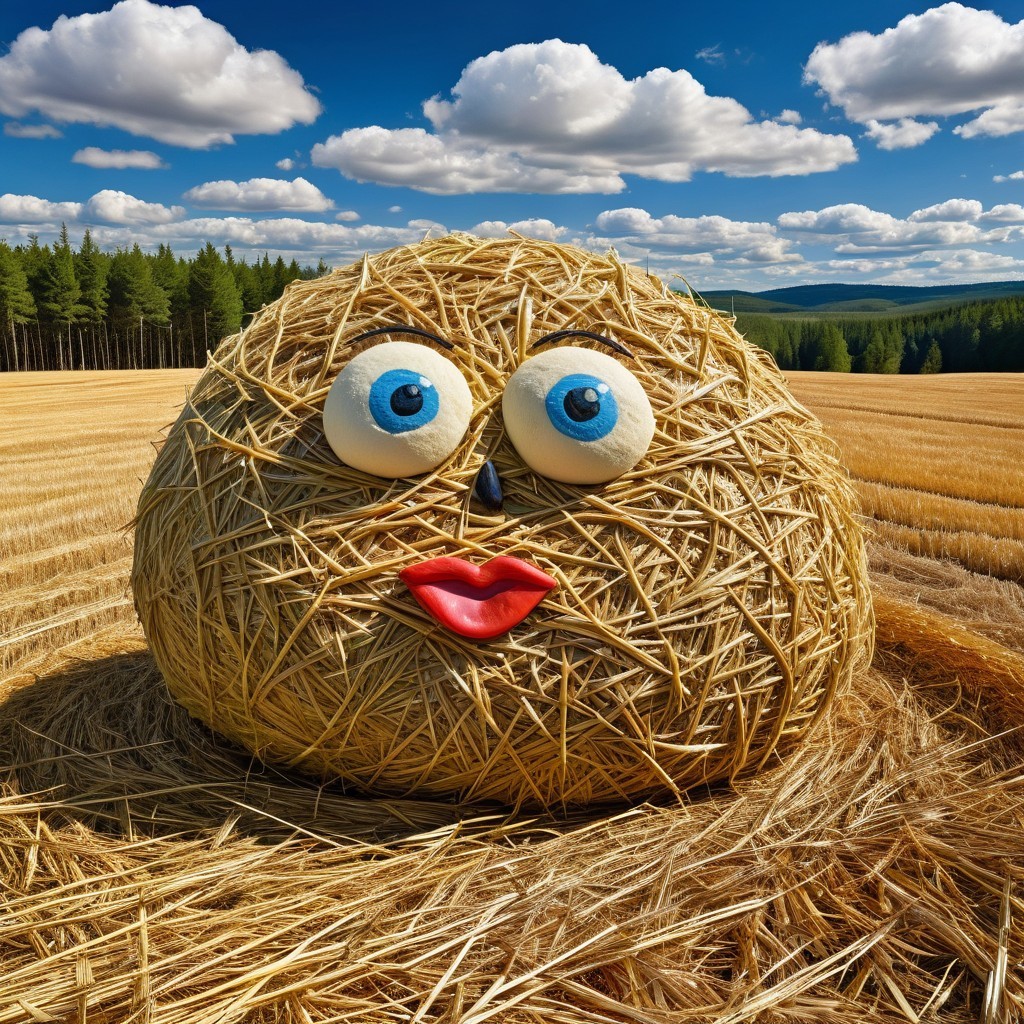 More about Whimsical Hay Bale Smiles in the Field Humor