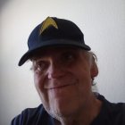 This is a stylized 3D pixel art character with gray hair and a beard, wearing a black cap with a yellow "A." The character has a simple, blocky design and a neutral expression.