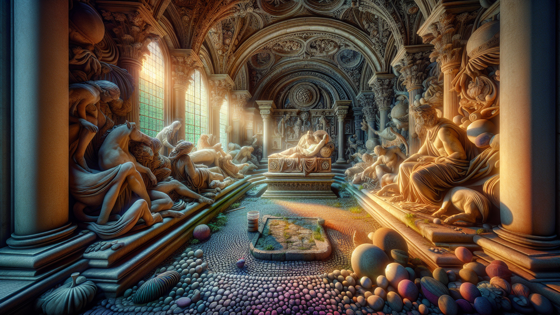 This stunning photograph captures a serene resting place with intricate details and vibrant colors. The cinematic lighting and hyperrealistic quality create a dynamic and visually captivating scene.