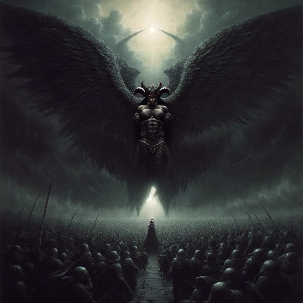 Its wings outstretched, a nightmarish king.